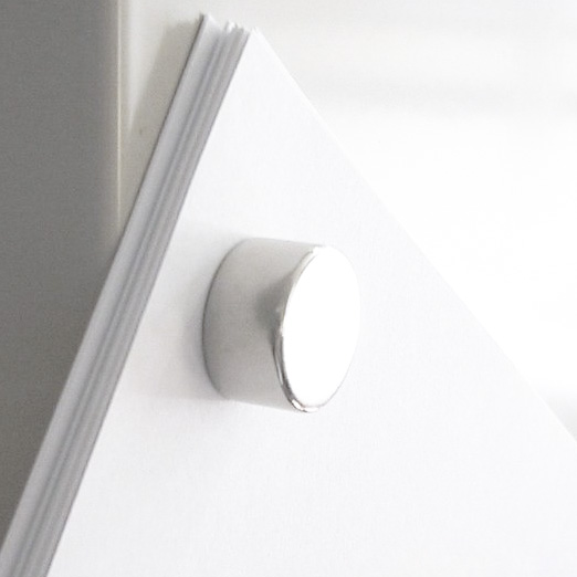 Die Größen liegen in einem guten Mittelmaß. Er mag klein erscheinen, aber ist beeindruckend stark. Der Magnet kann 8 Stück A4-Blätter an unseren magnetischen Whiteboard-Wänden halten. Direkt auf Metall können es auch mal 34 A4-Blätter werden. Zwei dieser Magnete können sich durch 30 mm dickes Holz anziehen. Der gesamte Magnet hat eine Nickeloberfläche. Je dicker der Magnet ist, desto stärker ist er.