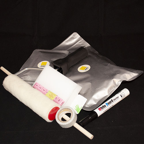 - WEISS und MAGNETISCH wird das Whiteboard, sofern Sie die Fläche mit Wallrite Magnetfarbe grundieren, diese anschließend glatt schleifen, weiß streichen und im letzten Schritt mit der weißen Whiteboardfarbe versehen. Verwenden Sie einen weißen Primer vor dem Auftragen der weißen Whiteboardfarbe, um die schwarze Magnetfarbe zu überdecken. Die Magnetfarbe ist schwer und besteht zu 70% aus Metallspänen, wodurch die Unterlage uneben wird und ein Abschleifen der Fläche erforderlich macht.
