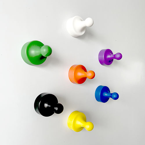Greppmagnet Stor finns i många roliga färger, ser ut som en Fia-pjäs och är lätt att flytta på eller hänga saker på.